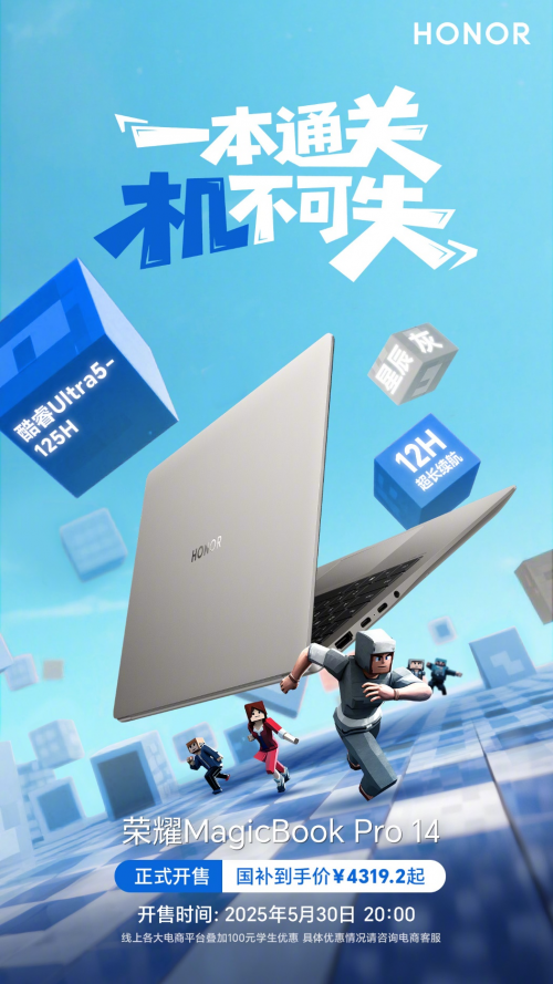 5月30日,荣耀MagicBook Pro 16 HUNTER版2025迎来新成员,搭载RTX5060显卡的版本正式上市,为追求轻薄静音游戏体验的用户提供更多选择,将成为今年618最值得关注的5060游戏本。5月30日晚8点,RTX5060版全平台开售,提供Ultra9 285H和Ultra5 225H两种配置机型,国补到手价7599.2元起。
