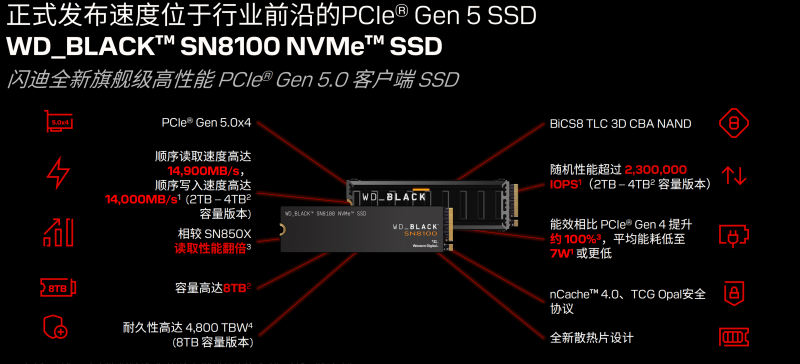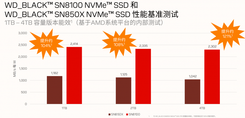 充分榨干PCIe 5.0 x4,闪迪WD_BLACK SN8100 NVMe SSD性能、能效均属前列