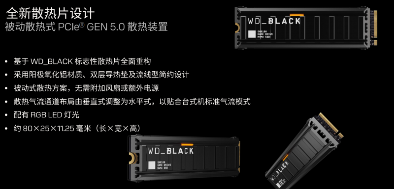 即便低能耗使得WD_BLACK SN8100在不加装散热片的情况下亦能够稳定发挥其性能。但为了满足更多用户的需要,WD_BLACK SN8100各规格的散热片版本预计在今年秋季发售,其不仅采用铝合金外壳,并且还配有RGB背光,进而能起到装饰PC的作用。