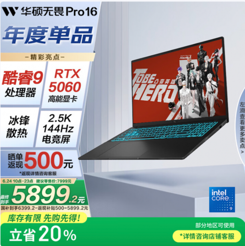 最近华硕无畏系列带来一个全新答案——华硕无畏Pro16 2025,凭借全新英特尔酷睿9标压处理器、RTX 5060独显和2.5K 144Hz高刷大屏三大核心配置,首发价7999元,可领取至高20%国家补贴+晒单返500元福利,实际到手仅5899.2元,诚意十足。