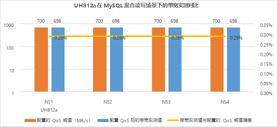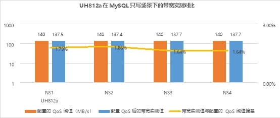 实测表明,在容器化 MySQL 环境中,无论是只读、只写还是混合读写场景,UH812a 的 NS 技术均能精准执行 QoS 设置,提供高效稳定的性能表现,有力支撑企业数据存储与处理需求。