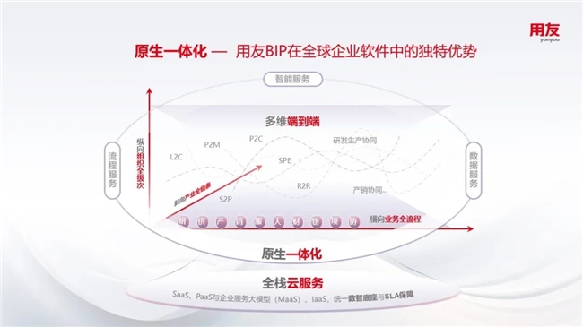 事实上,我们从“包括横向到边、纵向到底、斜向到链”的原生一体化特性,看到了用友BIP的一种全新的“一体化”理念:用友BIP所有应用之间、应用和平台之间、应用及平台和ISV生态产品之间都是拉通的,且原生一体化特性可以助力企业跨组织、跨系统、跨场景的高效协同,实现集团上下级、产业协同的原生一体化。