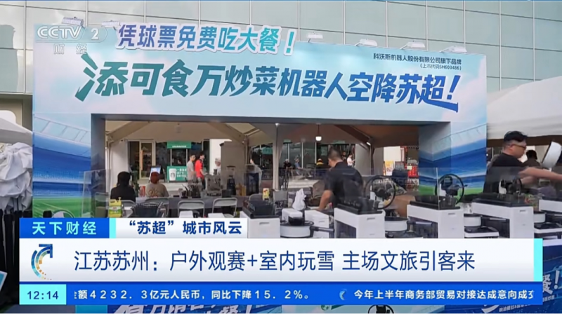 今夏,江苏省城市足球联赛(苏超)正从体育赛事升维为全民狂欢的“文旅体商”融合样本。在7月20日苏州主场对阵镇江的比赛中,场外一幕奇观引发球迷排队围观:苏州本土科技领军品牌添可携炒菜机器人高调亮相绿茵场边,免费发放1000份炒菜机器人现场烹饪的美食大餐,为现场球迷带来了充满未来感的美食体验,为澎湃热血的苏超再添科技亮点,在央视镜头的聚焦关注下成功“出圈”。添可“炒菜机器人”用“白科技”的硬核实力为家乡球队喝彩,也向外界展示了其对餐饮产业革新的雄心。
