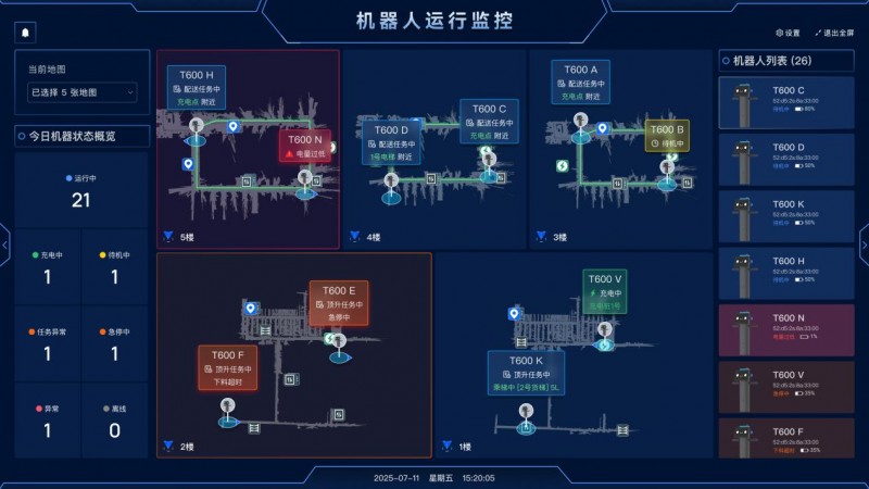 不仅如此,T600系列产品还兼容VDA5050标准通信协议,无需定制开发或接口改造,即可与其他兼容该标准的机器人及软件系统实现协同调度,快速构建起统一、高效、可扩展的柔性物流网络。