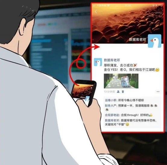 项目验收那晚,老邓望着稳定运行的系统、波澜不惊的监控大屏,拿起手机,悄悄发了个朋友圈。