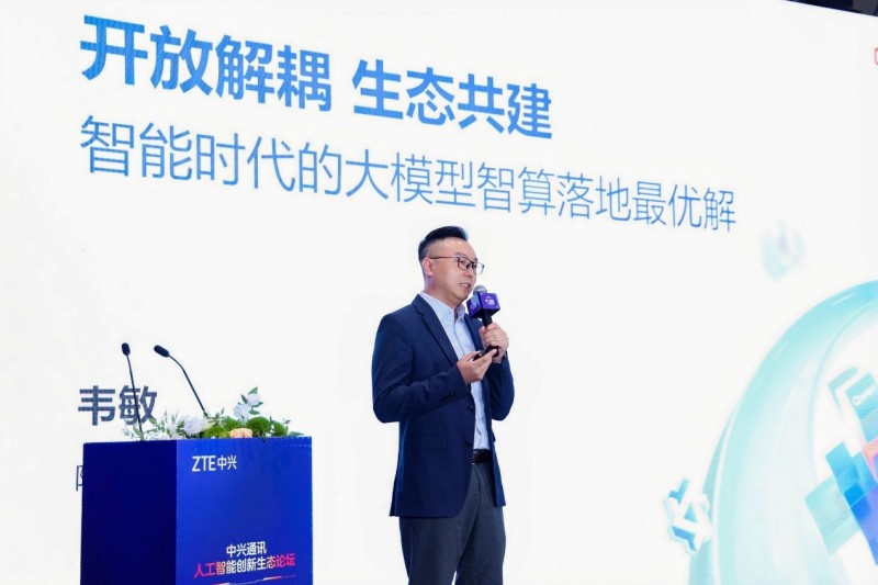 中兴通讯高级副总裁张万春出席会议并发表致辞,他表示开源开放、高性价比算力及多模态AI应用是发展趋势。中兴通讯以"连接+算力"为核心,推出全栈智算解决方案,致力于打造"AI for All"终端生态。