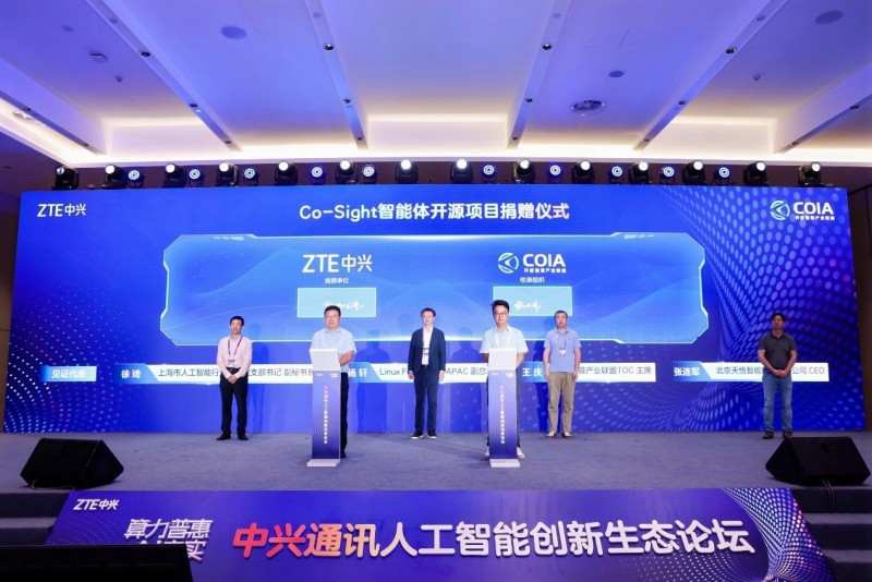 在会议即将闭幕之际,中兴通讯携手各位发言嘉宾及等企业代表,共同发起生态合作倡议。此倡议希望集各方之力及各家之长共同推动人工智能产业繁荣发展。