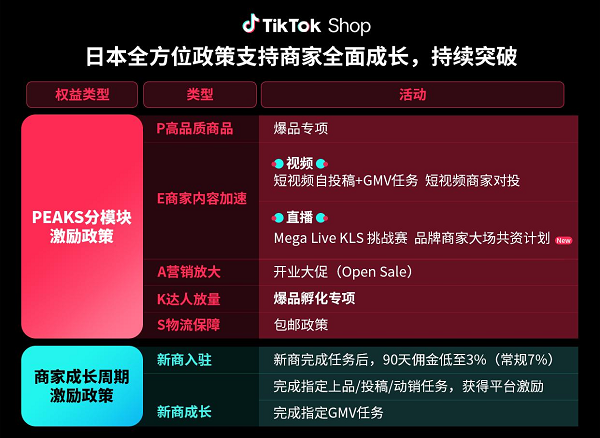 面对日本跨境电商市场的高速增长机遇,TikTok Shop重磅推出完善的PEAKS经营方法论板块和商家成长激励。