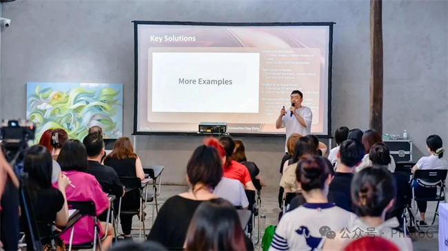 作为当日最后一位登台分享的企业,橙果视界传递的理念明确:AI 不应只是停留在技术概念层面,而应转化为品牌可用、可控的实用工具。PhotoG 依托公司自建的500万高质量图片数据集与200万分钟视频数据集,通过严格的数据筛选与精细化标注流程确保版权合规性与视觉质量,实现对生成内容风格、结构、细节的精准控制。这一能力让品牌能够高效批量生产原创视觉内容,同时有效规避潜在的知识产权风险,为创意实践提供可靠支撑。此次分享获得了现场品牌代表与行业专家的高度关注与积极互动。