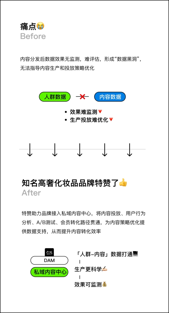2.优化内容创作与分发 :深入了解哪些类型的内容更受欢迎,哪种形式的呈现更能引发互动。基于这些洞察,品牌可以优化内容创作方向,改进内容形式,合理分配资源,提升内容的整体品质和吸引力,从而提高内容分发的效果和效率。