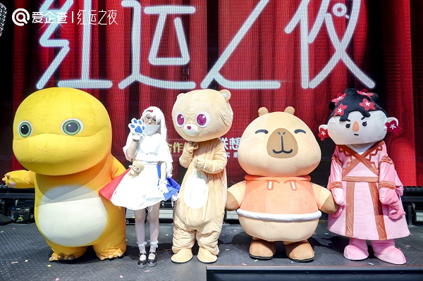 到了盛典核心环节,于祥宇又化身“红毯解说员”,陪着观众一起见证国民品牌 IP 的创意红毯秀。蹦蹦跳跳的郁美净、手舞足蹈的爱奇艺、“一路冲刺”的特步、止不住飞吻比心的盼盼......品牌人偶们一边代表企业拿荣誉,一边轻松演绎“发疯艺术”。