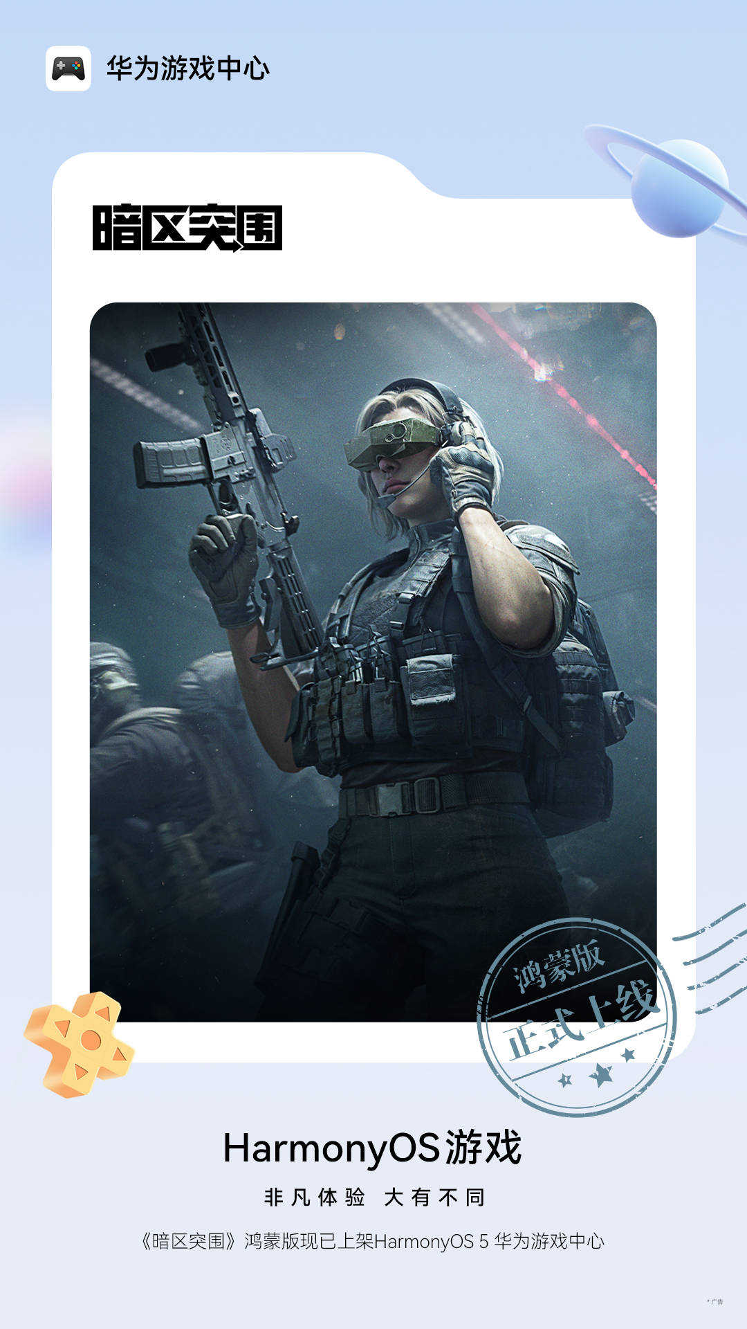 2025年9月16日,腾讯旗下硬核战术射击手游《暗区突围》鸿蒙版正式上线。玩家可通过HarmonyOS 5 华为游戏中心搜索下载即可体验。
