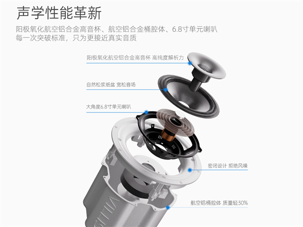 威力声以匠心铸就品质,突破公模的局限,自主研发6.8寸喇叭单元,结合中国高质量铝加工产业的独特优势,打造出轻量化航空铝合金高音杯与航空铝合金桶身设计。传统的吸顶音响大多是钢桶或铁桶的设计,十分笨重,威力声品牌为了更好的服务家庭用户,向世界级品牌看齐,升级了航空铝合金材质的应用。这不仅带来纯净动人的音质与持久耐用的性能,更为中国家庭献上轻盈优雅的声学体验。威力声的核心声学技术凝聚了该品牌声音设计师的无数日夜精雕细琢,成就了触动心弦的听觉盛宴。