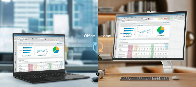 Swing移动屏内置的 LG webOS 系统是强大的智能核心。借助 Remote PC 功能,webOS 能助力用户远程连接本地电脑或云电脑。即便没有实体 PC,用户也能轻松使用视频会议、云端办公软件等多种远程办公服务,为居家办公带来更轻便、高效的体验。