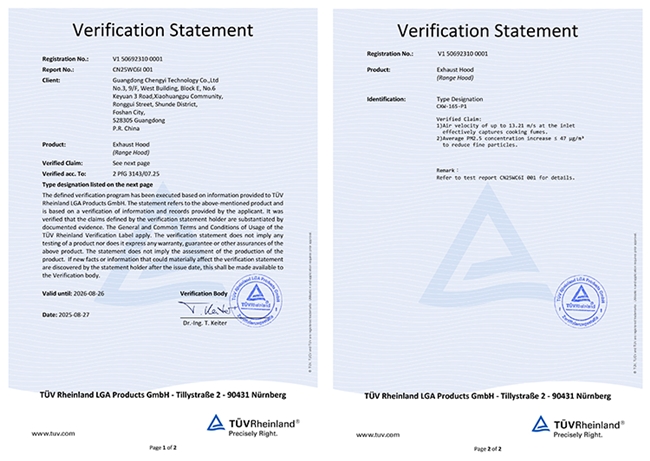 但市面上的油烟机因为性能不足,在排烟时很容易就捕捉不到锅中烧出来的油烟细微颗粒(PM2.5),导致油烟、油烟味四处乱窜,污染了厨房外的其他房间。而澄一科技推出的米家净烟机,通过搭载了能够解决厨房油烟污染与泄漏的IQV净烟技术,获得了德国莱茵TÜV性能验证。德国莱茵官方是这样点评的: