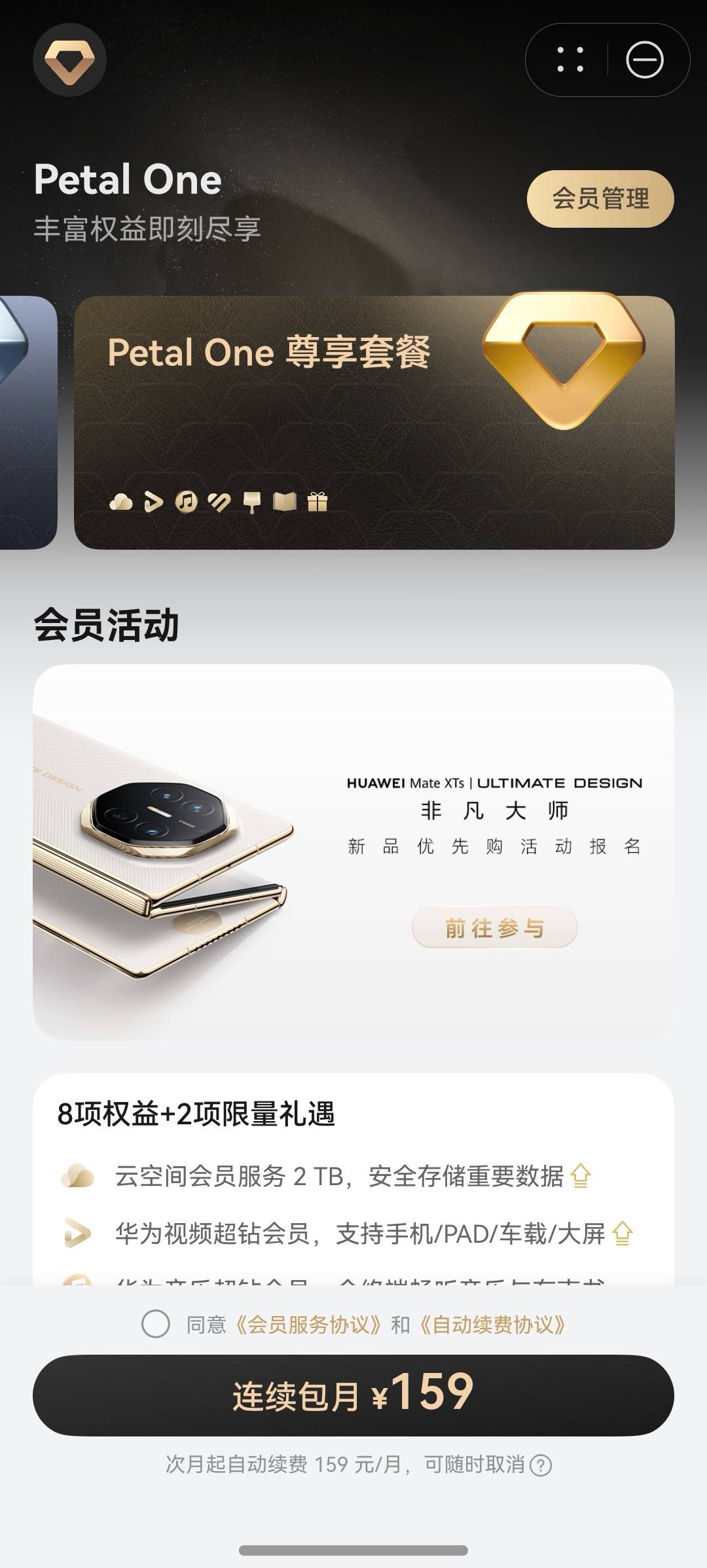 看到朋友圈好多人说华为 Mate XTs非凡大师有多难买,线下门店排长队,线上购机秒售罄,看到此情此景,我开始暗喜自己早已订阅了华为的Petal One会员,而且还是尊享套餐,一点不亏,享受着多项会员权益的同时,还有两份专属的尊享礼遇,告诉你们Petal One尊享会员有多香!