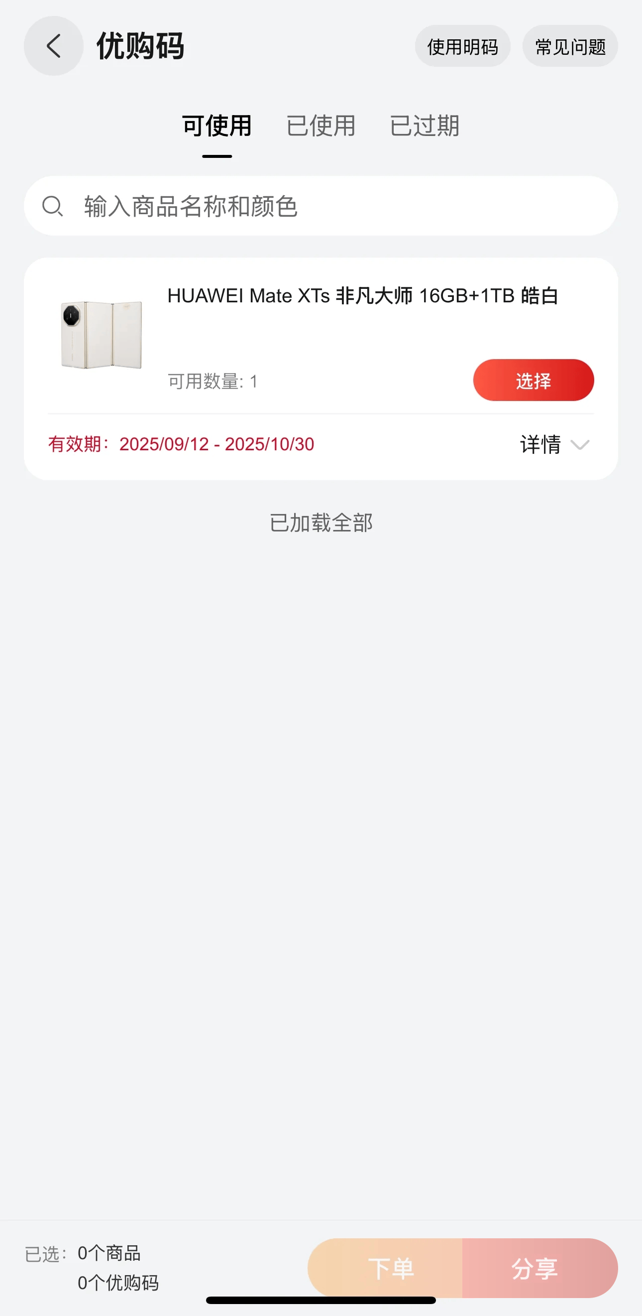 报名过了几天,就收到了优购码的短信,不枉我订阅了好几个月,果然被选中了优购资格,立马去华为商城使用,给自己订购了华为Mate XTs非凡大师16GB+1TB皓白色,现在坐等收货开箱!不用去门店排长队,也不用定闹钟去抢购,坐等Petal One给尊享老用户的这份专属权益,从容入手全新款三折叠,真是发自内心的开心。