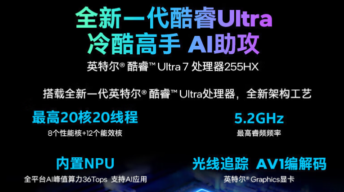玩大型游戏,核心配置是底气。机械革命耀世16 Ultra搭载的英特尔酷睿Ultra7-255HX 处理器,堪称 “能效与性能的双料冠军”:20核20线程(8性能核+12能效核)的豪华架构,睿频直冲5.2GHz,配合66MB超大缓存,无论是《永劫无间》的百人团战,还是《霍格沃茨之遗》的开放世界加载,都能快速响应不卡顿。更惊喜的是,其能效比较前代提升显著,85W功耗就能迸发前代125W的性能,让大型游戏的持续运行更稳定。