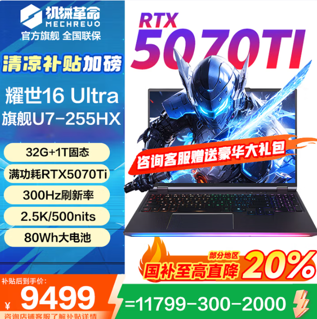 国补后9499元的价格,让机械革命耀世16 Ultra(Ultra7-255HX+RTX5070Ti)成为万元档最具性价比的 “3A大型游戏 战神”。它不只是一台游戏本,更是为大型游戏玩家量身打造的 “沉浸神器”—— 在这里没有发烫的键盘打断操作,没有嘈杂的风扇扰乱听觉,只有每一帧都流畅、每一秒都沉浸的游戏快乐。