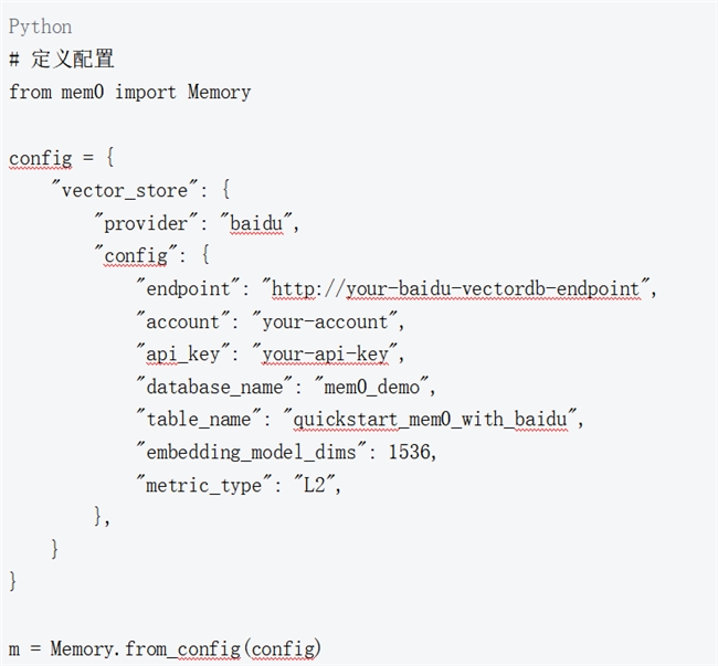 现在可以配置 Mem0 使用百度智能云向量数据库作为向量存储
