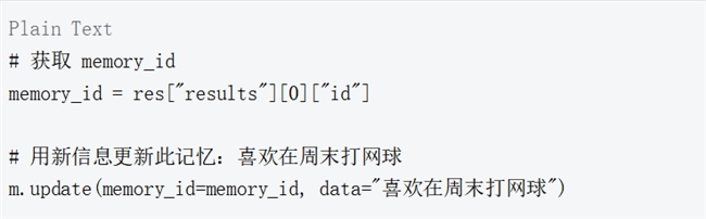 可以使用 add 函数的返回值来获取记忆 ID,允许通过 update 用新信息更新此记忆。