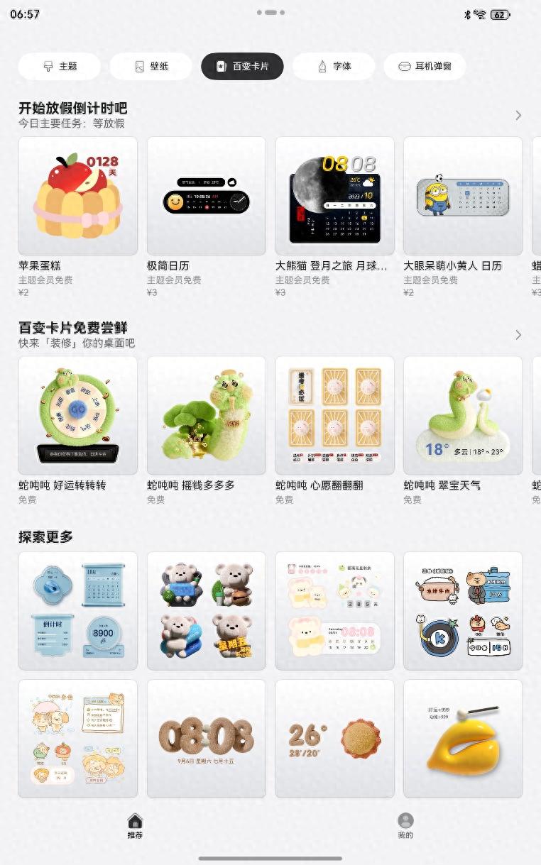 你甚至可以像装修房子一样,给桌面的不同页面定下模式。左滑进入“高效书房”,日程卡片、邮件预览和待办清单的百变卡片列队待命;向右轻滑来到“沉浸自习室”,单词卡片、专注计时器和课程表帮你打造知识充电站;再一滑,开启“健康生活馆”,运动数据、睡眠监测和饮食记录供你随时翻看。DIY不再只是简单的功能排列,更是你情感需求的视觉化呈现,彰显了个人的审美与品位。