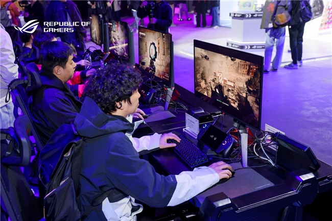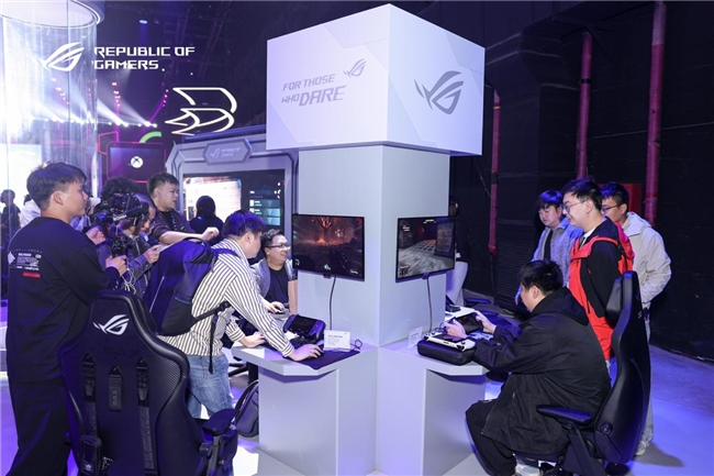 ROG新品超玩会还设置了OP互动区,在这里玩家可以尽情体验ROG绝神27吹雪这款高颜值的双模电竞显示器。它的纯白配色尽显桌面美学,27英寸的Fast IPS面板设计下,支持4K@160Hz与FHD@320Hz双模式。畅玩3A游戏大作时可启用4K@160Hz模式,在超高清的游戏画质下享受高刷新率带来的流畅丝滑动态效果。畅玩FPS等电竞游戏时,FHD@320Hz模式所提供的超高帧率,搭配1ms响应时间所带来的流畅体验,游戏画面的顺滑感更能让玩家超常发挥。它还支持ELMB SYNC动态影像清晰同步技术,可以使ELMB功能与VRR可变刷新率同步开启,充分消除画面残影与撕裂,并且挥别动态模糊的影响,使游戏画面的动态清晰度大幅提升。它也支持ROG游戏AI技术,通过动态准星与动态阴影增强等功能可以充分强化玩家的游戏体验,让玩家享受到智能游戏的乐趣。