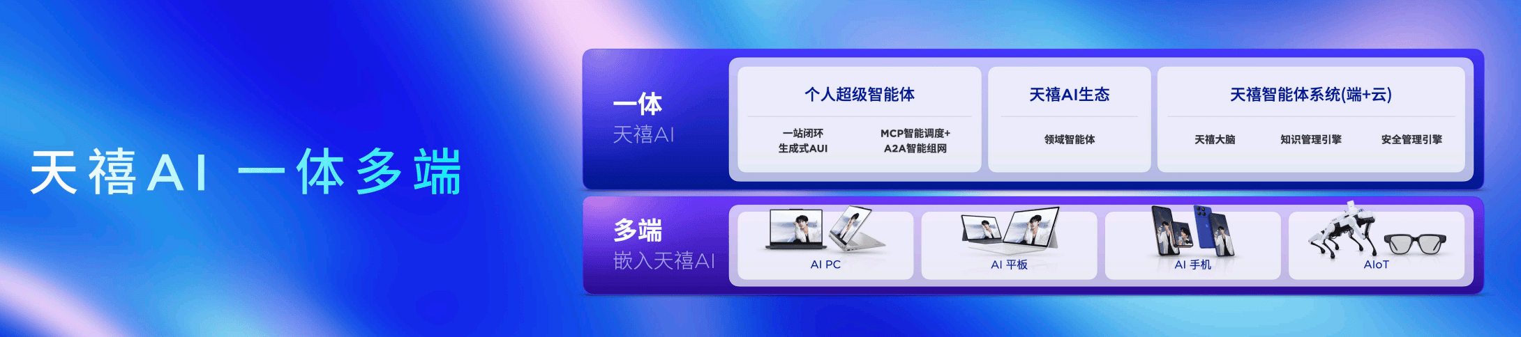 随着智能体的不断升级,首批搭载天禧个人超级智能体3.5的AI终端也同步亮相,这些终端将作为天禧AI在物理世界的延伸,共同推动智能体验从对话走向行动,从理解迈向执行。