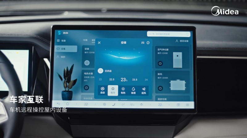 车控家:用户在行车途中,无需额外下载多端应用,通过比亚迪DiLink智慧网联系统即可实现对美的智能家居的多重便捷操作,如通过车机大屏触控界面,可实时查看家中电器运行状态,精准控制空调(含分体式及中央空调)、厨房空调、新风、电热水器、空气净化器、扫地机器人、取暖器、灯光、窗帘9大品类开关等模式。更支持语音唤醒比亚迪智能语音助手“小迪”,如一句“你好小迪!打开客厅空调”即可完成远程操控,让用户归家时即刻享受适宜温度、清新空气与备好的热水,告别等待烦恼。