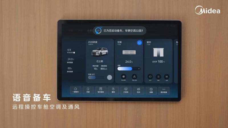 依托美的全屋智能生态布局、小美AI智能体多模态智慧家庭 AI 管家能力,配合具备高精准语音交互、跨端协同控制核心能力的比亚迪DiLink智慧网联系统,双方聚焦用户出行与居家的高频场景,实现了“车控家”与“家控车”的双向智能联动,以及无感智能体验,让科技真正融入生活细节。