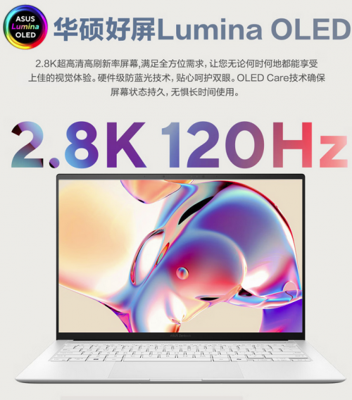 现在用户对笔记本的屏幕要求极高,尤其是现在的办公族不仅要PS图片,还要剪辑视频,所以一块清晰、色彩还原真实的屏幕就成为了标配。华硕灵耀14 Air还配备了一块2.8K 120Hz OLED华硕好屏,支持100% P3广色域、10bit色深以及100万:1超高对比度,色彩精准自然,无偏色,600尼特峰值亮度即便在户外强光下也能清晰显示。120Hz高刷新率带来流畅、丝滑的视觉体验,无论是浏览网页还是查看文件,画面都流畅无拖影,极大提升了日常办公和休闲娱乐时的视觉舒适感。