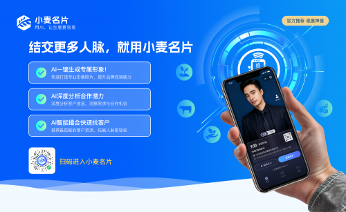 「小麦名片」不只是信息载体,而是一位能主动辅助你的 AI 助理:它能帮你塑造形象、介绍自己、节省时间、发现商机,并在你未察觉的地方默默提升你的商务效率。现在就加入「小麦名片」。让每一次联系方式的交换,不只是形式,而是一次真正有价值的连接。