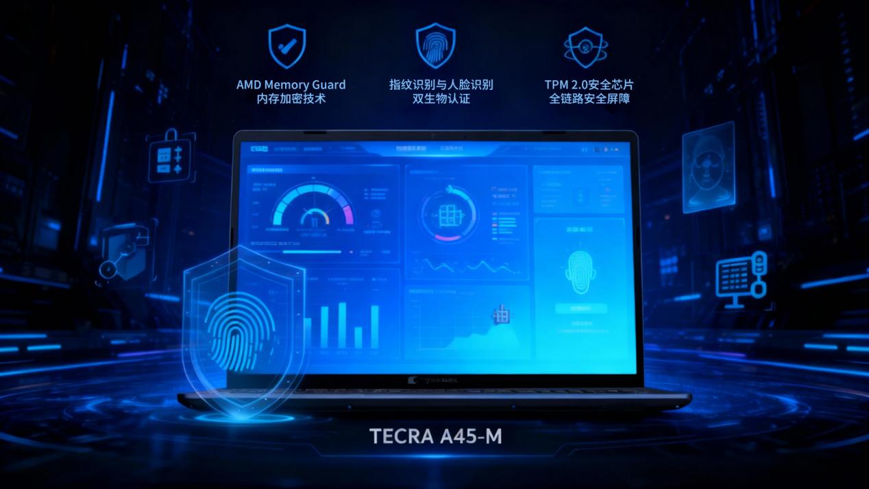 “AMD处理器安全不如Intel”的偏见,源于早期AMD在商务级安全功能上的布局较晚——Intel早年间推出的vPro技术、硬件加密方案,已深入企业采购心智,而AMD的安全技术普及较晚,导致不少人认为其“无法保障企业数据安全”。但如今,AMD的安全方案已实现“从跟跑到领跑”,TECRA A45-M更是构建了“硬件+软件”的双重防护体系。