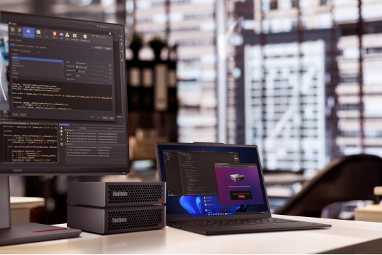 ThinkStation PGX机身仅有1L大小,轻巧如同一本厚重的书,却内含澎湃算力。其采用了标志性的3D蜂窝进气格栅,配合先进的气流循环系统,实现“多进风、快出热”高效散热,为高强度AI运算稳定保驾护航。无论是在科研实验室、现代办公室还是数据密集的工作环境中,PGX都能以极小占地带来前所未有的算力体验。