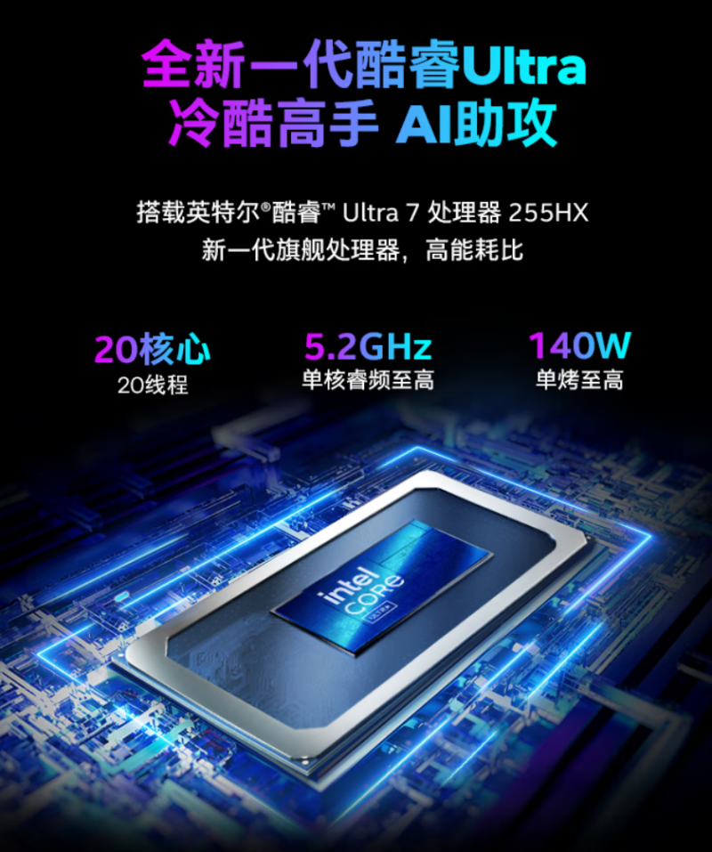 机械革命耀世和蛟龙哪款比较好?两款机型的核心差异集中在处理器上,英特尔酷睿Ultra 7 255HX作为新平台产品,与AMD锐龙9-8940HX这一成熟的N-1平台处理器形成了鲜明对比。从基础规格来看,酷睿Ultra 7 255HX在制程工艺、核心数量、最高功耗释放以及内存规格上均实现了对锐龙9-8940HX的小幅领先,这也为其性能表现奠定了硬件基础。