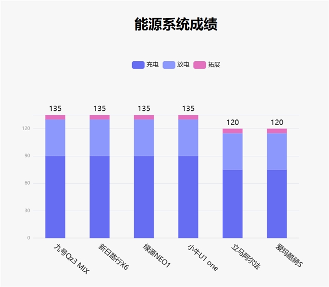 电动车能源系统排行根据电动车智能状态当中的电池容量、充电时间、电池保护系统、能量回收系统以及外沿拓展能力实验室考核评分。