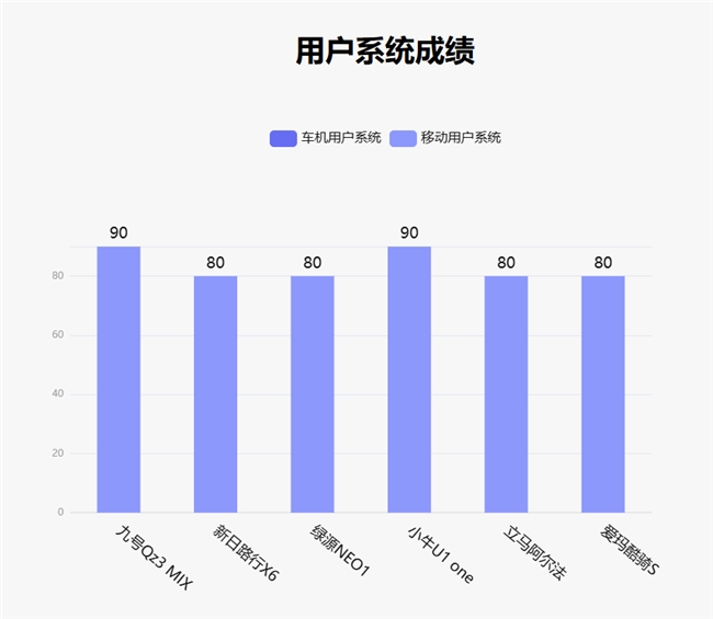 用户系统由车机用户系统和移动用户系统两个板块组成,根据信息丰富程度和使用效率综合考量评分。