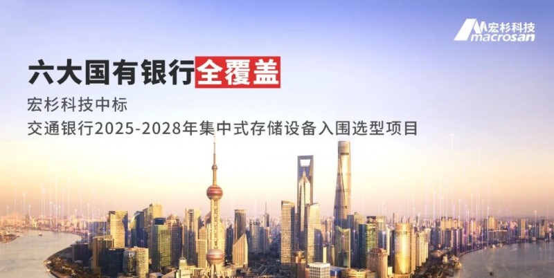 近日,交通银行公布2025-2028年集中式存储设备入围选型项目结果,宏杉科技凭借卓越的产品实力与技术创新能力成功入选。至此,宏杉科技已实现对六大国有银行的全覆盖,标志着公司在关键金融领域取得重大市场突破。