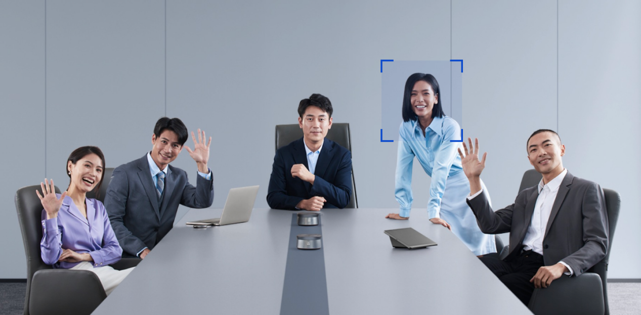 Maxhub经典V7则侧重于发言人自动追踪功能,能确保发言者始终处于画面中心。这种模式更适用于有主讲人、需要突出重点发言者的场景,如演讲、培训或单人汇报。其拾音系统基于腾讯天籁inside算法,表现稳健,拥有15米的拾音距离。
