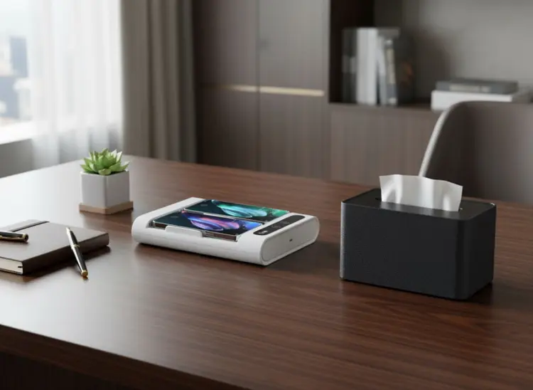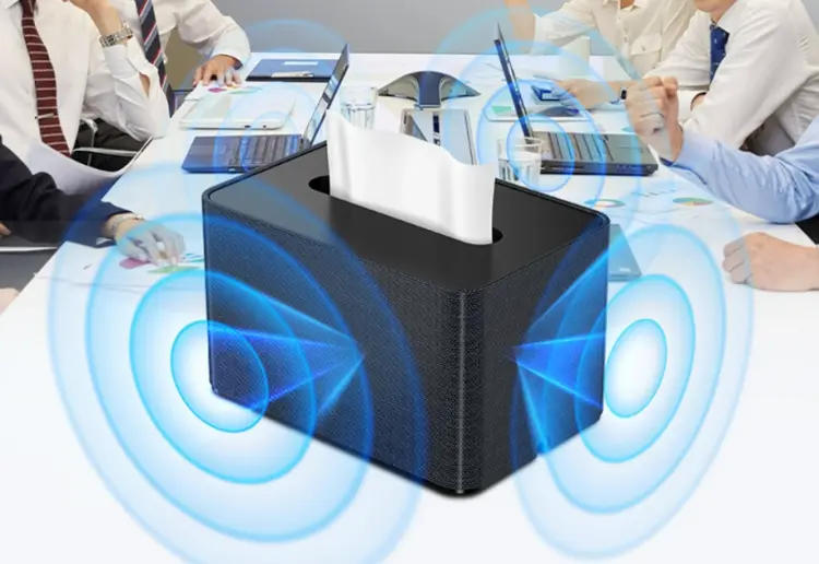 场景化伪装设计则让“加密声场”实现隐形融入。科密将录音干扰器巧妙设计,伪装为纸巾盒、蓝牙音箱、车载香薰、车载净化器等日常物品,外观与普通生活用品无异,可无缝适配会议室、办公桌、车内等多种场景。以RP80 Pro为例,其纸巾盒造型自带抽纸功能,即便放置在洽谈桌中央,也不会引起他人怀疑,真正实现“防护于无形”。