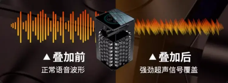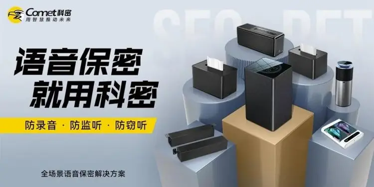 “加密声场”的核心奥秘,在于科密自主研发的COMET RecBlock 3.0超声波压制技术。与传统噪音掩盖式防护不同,该技术通过声学原理和智能算法生成特定频率的超声波,这种声波处于人耳听觉范围之外,不会干扰正常对话,却能精准作用于录音设备的麦克风拾音单元。当超声波与正常语音信号混合后,录音设备会因频率过载产生信号失真,最终录制内容转化为无法还原的杂乱杂音,从源头切断信息泄露路径。