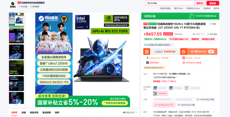 一、酷睿UItra 7 255HX:全新架构设计 重新定义游戏本的性能