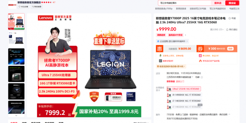 积极响应AI高静认证的联想拯救者,在Y9000P系列之后,又推出了价格更加亲民(补贴价8000元左右)的联想拯救者Y7000P 2025(酷睿UItra 7 255HX),无需手动设置,自带的野兽模式即可满足强性能与舒适体验的双重需求,成为AI高静游戏本的典范之作,成功跻身“2025年最具性价比的游戏本前十名 ”榜单行列。