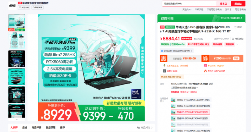 • 华硕天选6 Pro酷睿版(Ultra 7 255HX):融合二次元美学与轻量化设计,兼顾学习、创作与游戏多场景需求,是追求高性价比与移动便携的年轻用户的理想之选。