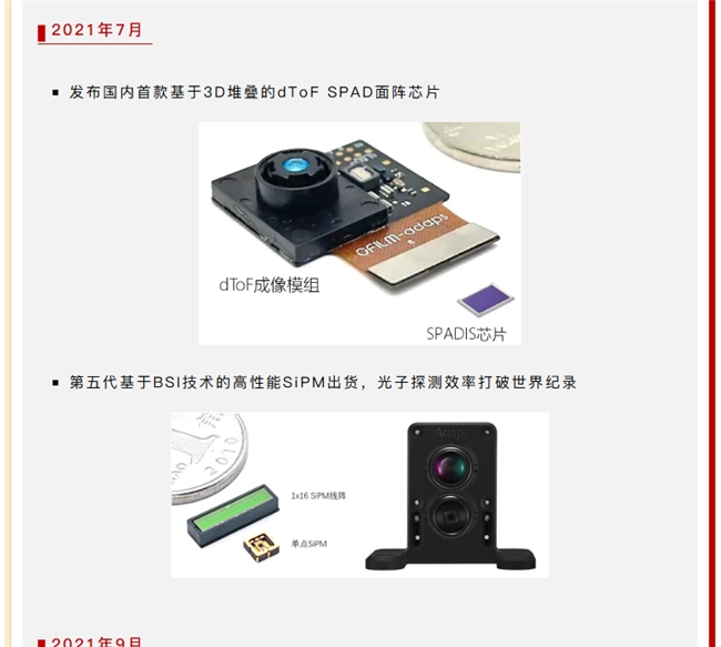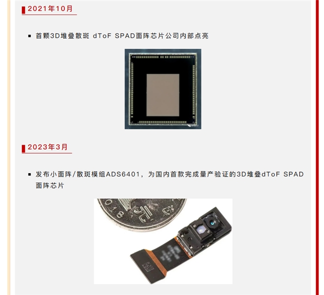 • 2023年8月,灵明光子发布超高分辨率SPAD面阵芯片ADS6311:根据其官方新闻稿及行业奖项材料,该芯片感光区域集成了768×576个SPAD,并明确集成了先进的片上数字信号处理模块,宣称能独立完成部分数据处理。这表明ADS6311已超越了单纯提供原始数据的传感器范畴,具备了在芯片内部进行关键数据处理的系统级功能。这一升级,使其从联合开发中的“组件供应商”,迅速转变为具备完整系统级芯片设计能力的“解决方案提供者”。