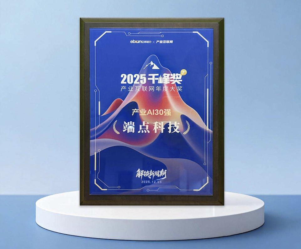 杭州端点网络科技有限公司(以下简称“端点科技”)凭借在产业AI领域的卓越表现以及实践成果,成功登上“产业互联网新周期实践先锋图谱”和《2025新周期领航案例集》,并荣获“2025千峰奖· 产业AI30强”,成为本届大会聚焦的关键创新力量。