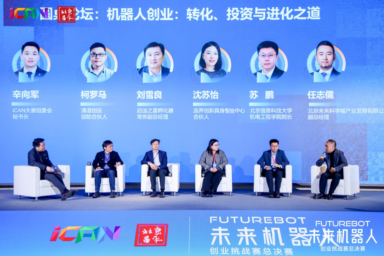 随后的圆桌论坛环节,在iCAN大赛全国组委会秘书长辛向军的主持下,与清湛创投创始合伙人柯罗马,启迪之星孵化器常务副总经理刘雪良,连界创新具身智能中心合伙人沈苏怡,北京信息科技大学机电工程学院院长苏鹏,未来科学城产业发展公司副总经理任志儒五位嘉宾,围绕《机器人创业:转化、投资与进化之道》展开了深度对话,从高校成果转化、资本市场偏好及园区产业服务等不同维度,为机器人创业者提供了全方位的实战建议与进化指南。这种“以赛促创、以会聚智”的模式,成功搭建起了一个连接高校、企业、资本与政府的综合性创新生态平台。