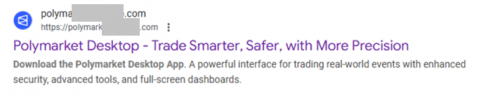 针对"Polymarket桌面版"的搜索结果中,出现了指向分发远程访问工具的欺诈网站链接
