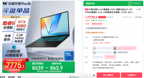 如果你的购机需求就是长期稳定输出 + 一台电脑搞定所有场景,那么这款华硕无畏Pro16 2025非常值得关注,从性能释放、屏幕显示到AI高效赋能,满足主流高需求用户的多场景使用需求。当前入手部分地区还可享受至高10%政府补贴,到手价7775.1元起。