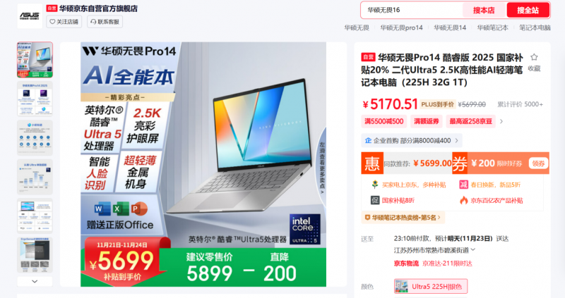 作为华硕轻薄本系列中的热门产品,它凭借酷睿Ultra 5 225H处理器的强劲性能和均衡配置,成为学生和白领用户兼顾创作与办公的理想选择。